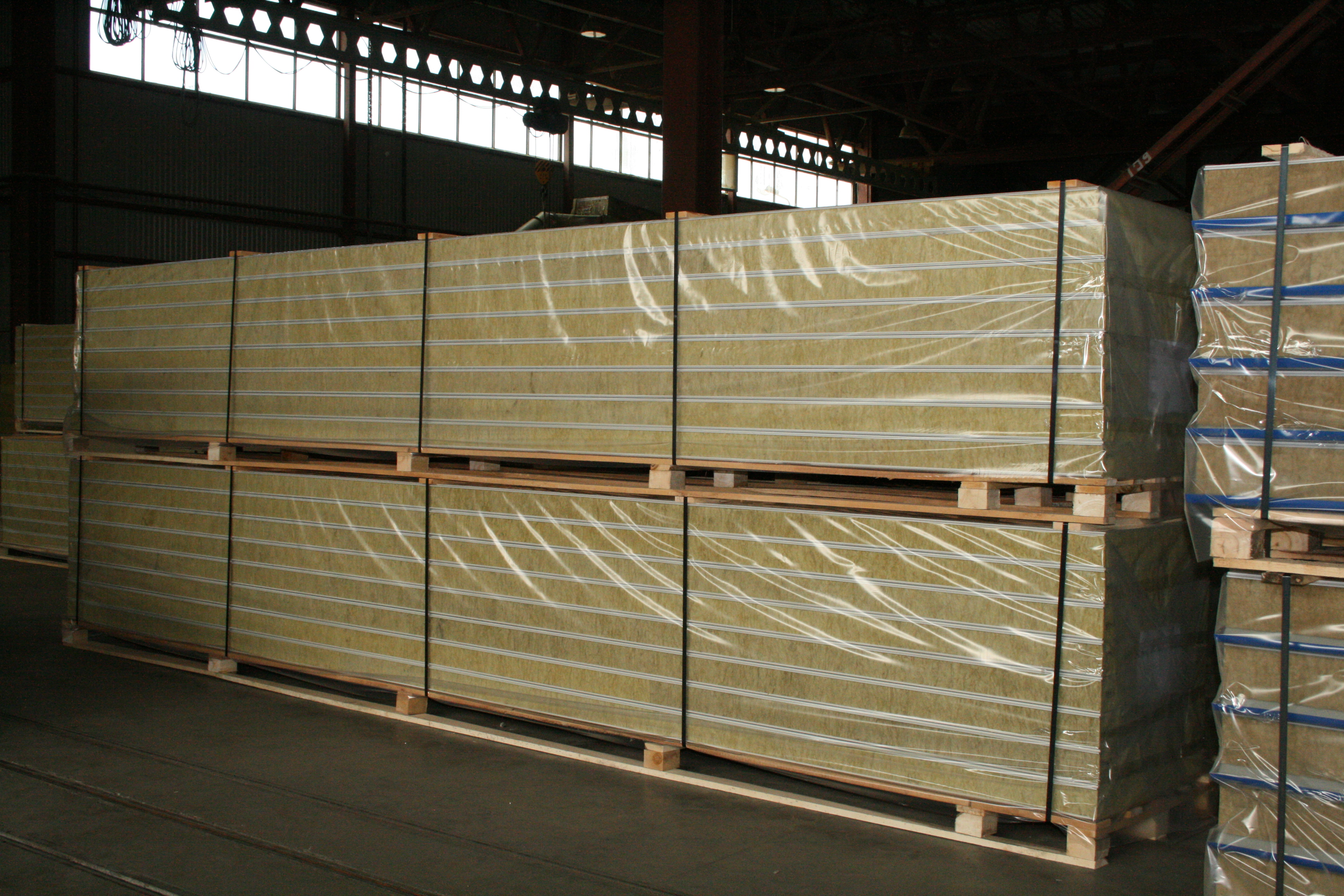 Плиты из каменной ваты СЭНДВИЧ БАТТС СТАНДАРТ применяются в качестве среднего теплоизоляционного слоя в «сэндвич» панелях с металлической оболочкой, используемых в стеновых конструкциях.